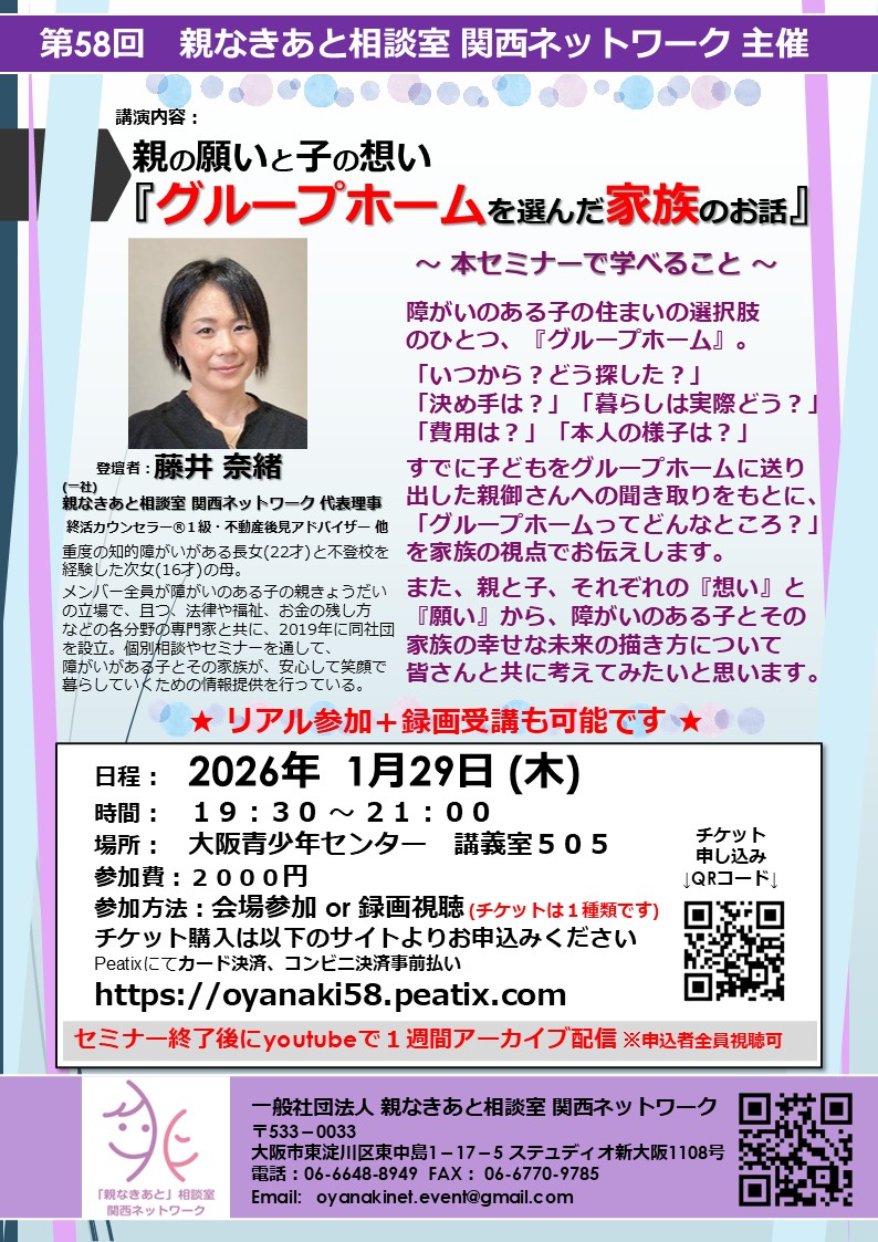 この事は、 障がい者とその家族にとって、避けては通れない問題です。